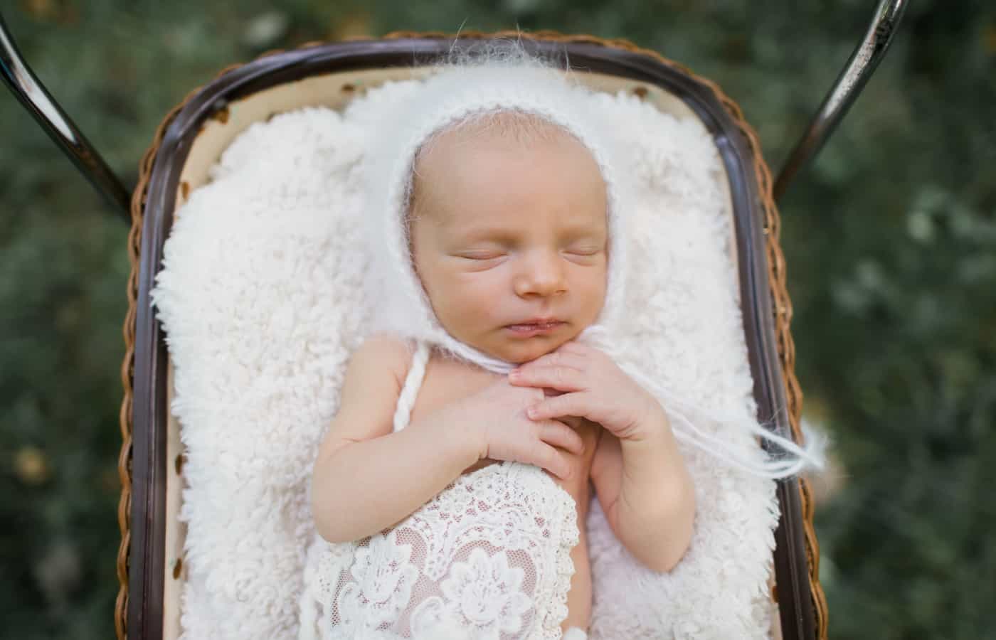 “As long as you’re putting baby in a natural position and not forcing her body into awkward poses, you’re propping the head and neck securely, and padding up the basket and protecting baby from any sharp corners, sharp edges, or anything scratchy, these types of poses can be okay. However, a newborn shouldn’t ever be left alone, or expected to hold her head up or sit “upright” or “lean” on things. You have to remember that their safety is always the first priority.”