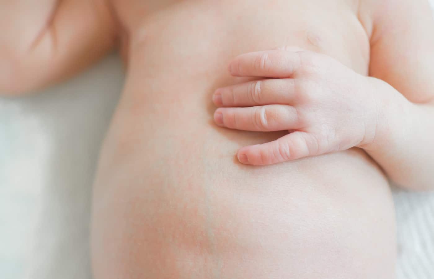 “The remaining bit of umbilical cord itself doesn’t hurt; it’s like hair or a fingernail, so there’s no feeling in it. Sometimes the skin around it can look red, but most of the time that’s just from the drying process. If you see that the skin is a little irritated, you can be extra gentle just because it can be a little sensitive to the touch. But temporarily wrapping baby’s torso or putting clothing or a blanket on the belly button area won’t hurt the average newborn.